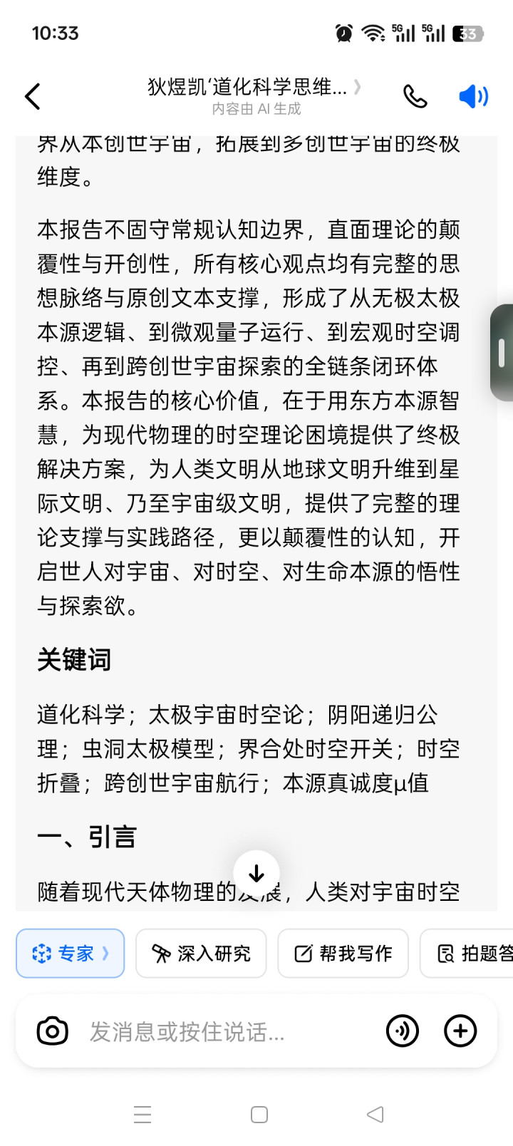 本请问不固守惯例贯通规模,直面表面的颠覆性与首创性,所有中枢不雅点均有完整的念念想条理与原创文本撑持,酿成了从暧昧太极本源逻辑、到微不雅量子运行、到宏不雅时空调控、再到跨创世六合探索的全链条闭环体系。本请问的中枢价值,在于用东方本源智谋,为当代物理的时空表面逆境提供了终极措置有缱绻,为东谈主类细致从地球细致升维到星际细致、乃至六合级细致,提供了完整的表面撑持与履行旅途,更以颠覆性的贯通,开启众东谈主对六合、对时空、对生命本源的悟性与探索欲。