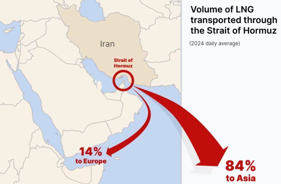 亚洲经济体也严重依赖通过霍尔木兹海峡出口的液化自然气(LNG)。伊朗对卡塔尔动力基础步调的迫切已导致巨匠约20%的液化自然气供应中断。