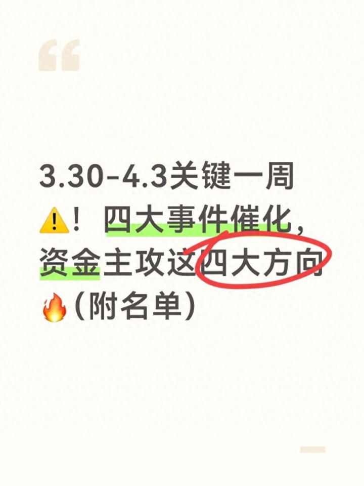 下周3.30-4.3四天时期,四大行业重磅事件接连落地,电力、芯片、储能、贸易航天四大赛说念同步迎来催化,是一季度末不行多得的结构性契机窗口。事件驱动行情的中枢,是看懂逻辑、踩准节律,而非盲目跟风。