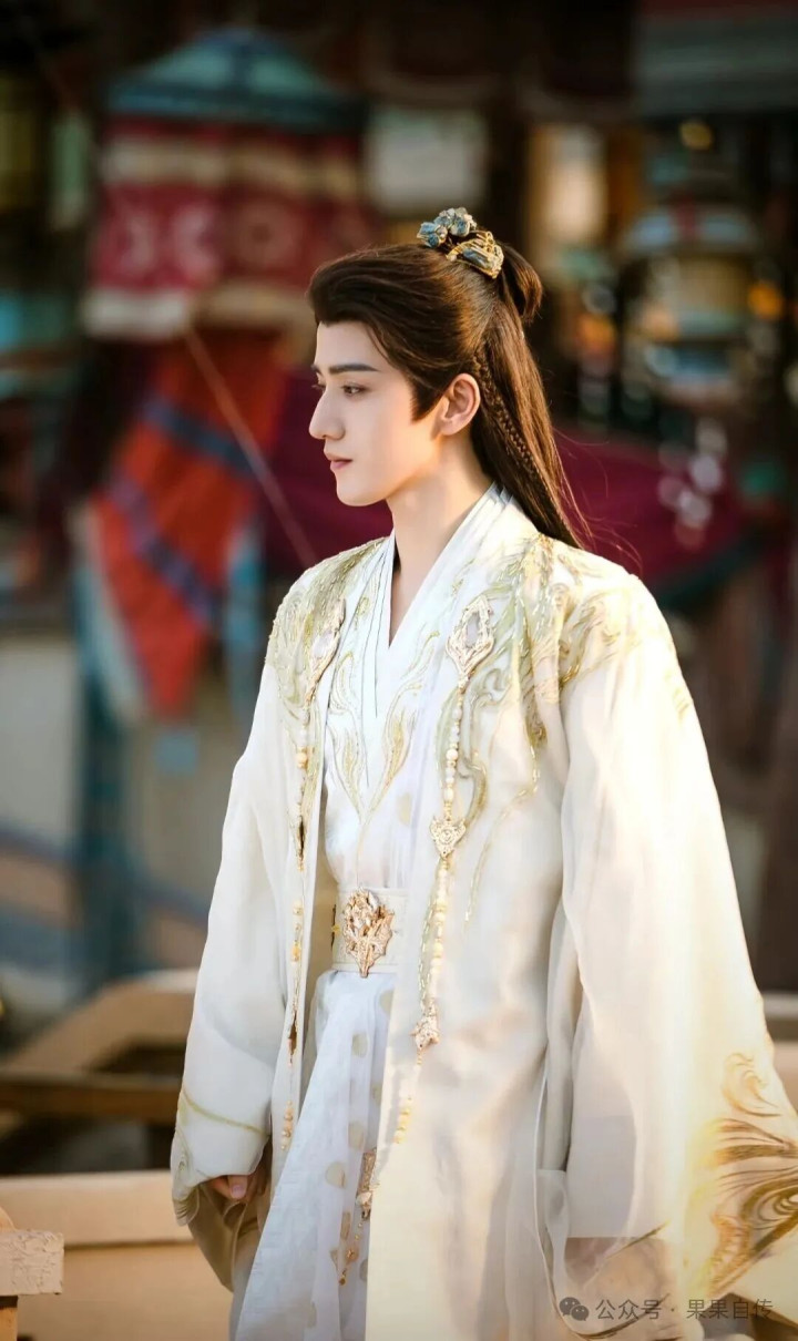 男主罗嘉(王弘毅 饰)。 他名义是不染尘埃、悲悯众生的佛子,直率稀有,坐怀不乱;实则是身负大权、大辩不言的西域掌权者,零丁奥秘,心有乾坤。