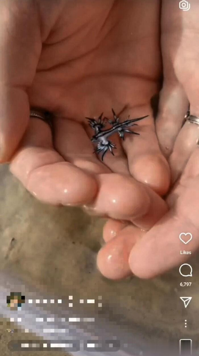 40.诡异的蓝色生物被冲上了海滩。它们是一种以水母为食、毒性极强的海蛞蝓。