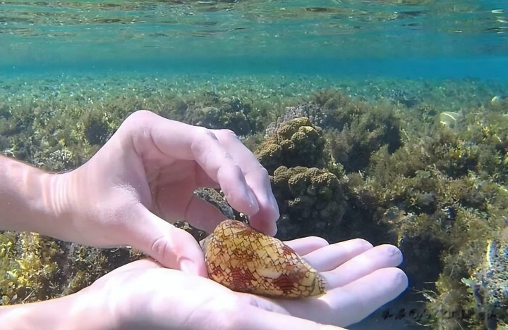 比如,一位叫 Frank 的网友在埃及红海浮潜时,发现了一个色调璀璨、纹理漂亮的“贝壳”,还一度念念带回家当顾虑品。自后他在 Reddit 回忆,那时只以为它很颜面,直到发现壳里还有分量和动静,才先拍了几张像片。