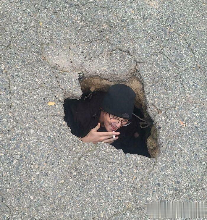 20.某东说念主简直掉初学廊下的塌陷洞,幸而实时收拢洞边,胸口以下的躯壳悬在半空。洞口约十英尺宽、十五英尺深,蔓延至我烤架下方中部。