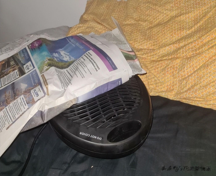 34.他开着暖风机最大功率睡着了,暖风机倒在床上,被一个棕色的亚马逊快递袋压着,而他就昏睡在控制。淌若没东说念主实时检讨,如实可能激勉失火,燃烧整栋屋子。