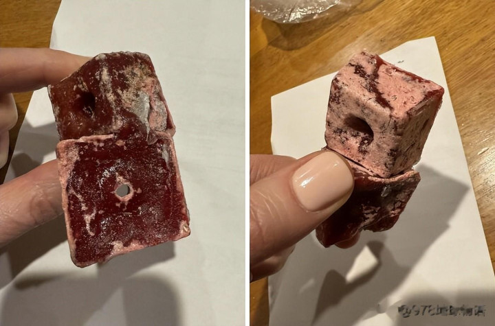 5.这是什么?我家狗刚从外面叼归来的。是老鼠药!迅速带狗去看兽医,并把这块毒饵一说念带上。希望它没事,也没吃太多。有些东说念主真实泼辣,故意下残害狗,希望此次不是那种情况。
