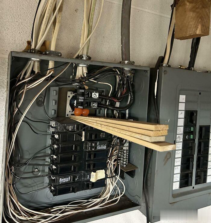 12.某东说念主家的配电箱,听说那堆前仰后合的东西塞进去后一直没出事,这种“神操作”竟对峙了十五年。如今它终于快坏了,正在更换中。是的,会偶尔冒火花,真实无言。