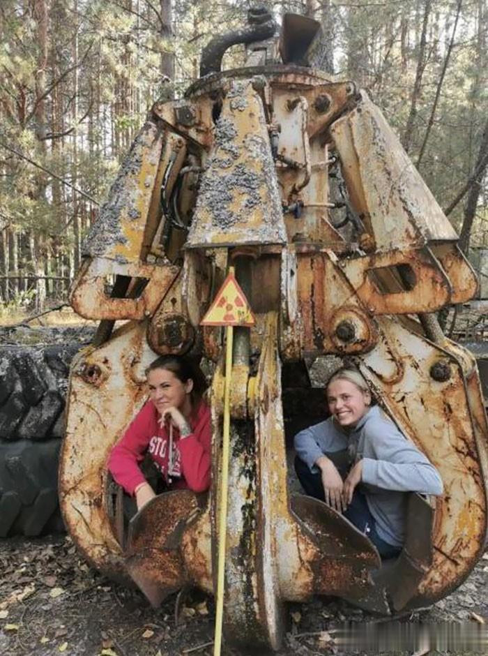 7.切尔诺贝利的旅客坐在事故后使用过的挖掘机握斗里。(那上头的辐射水平是致命的。)
