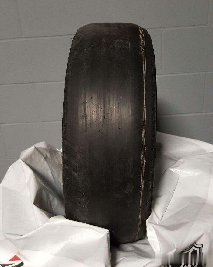 24.这是我见过最光秃的轮胎,被摆在展厅里展示。这样的轮胎淌若不足时更换,车辆行驶中很危急。