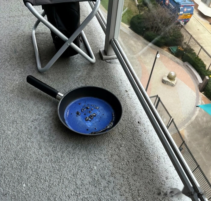 44.室友把只剩橄榄油的特氟龙锅在火上烧了一个小时,端正锅变蓝,还开释出了有毒气体。