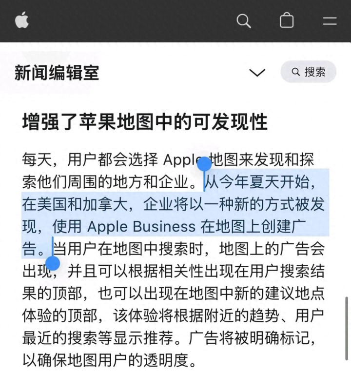 昨日(3月24日),苹果官网发布新闻稿,布告推出新的企业职业平台“Apple Business”。与此同期,还公开了苹果舆图的告白新盘算。