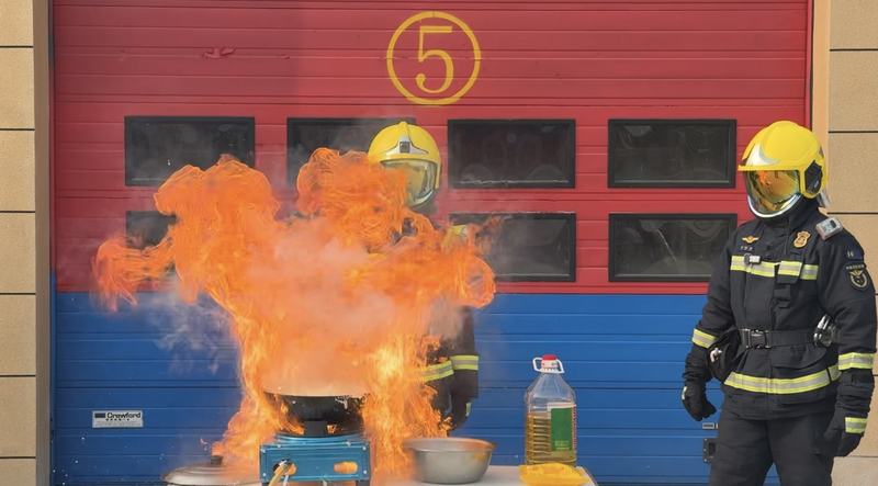B体育官方网站首页 食材不沥干、面粉扬撒、油锅浇水,消防履行展示厨房用火安全隐患