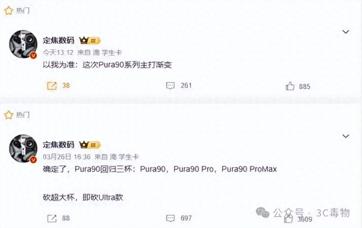 华为Pura90系列,不光从四款造成三款,同期定名的状貌也变了。