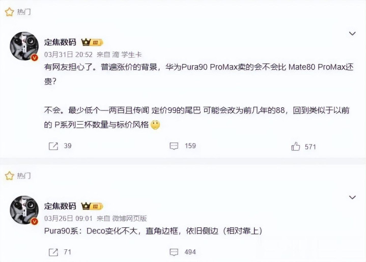 至于价钱,华为Pura90系列还会比上一代低廉100元至200元。