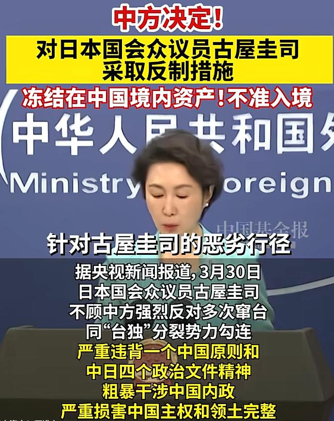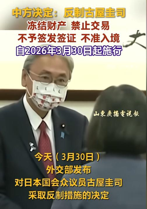 3月30日中海应酬部发布第20号官方令,以雷霆之势对日本国会众议员古屋圭司扩充全面反制:冻结其在华一说念钞票、不容境内任何机构与个东说念主同其贸易往还、拒发签证并永恒不容入境中国内地及港澳地区,格式当日即刻成效。