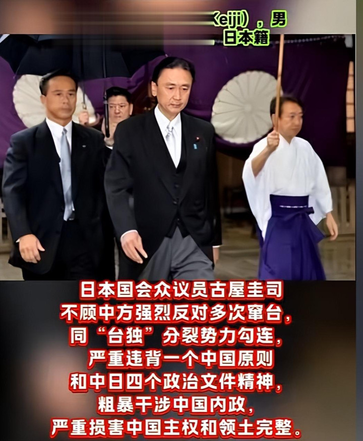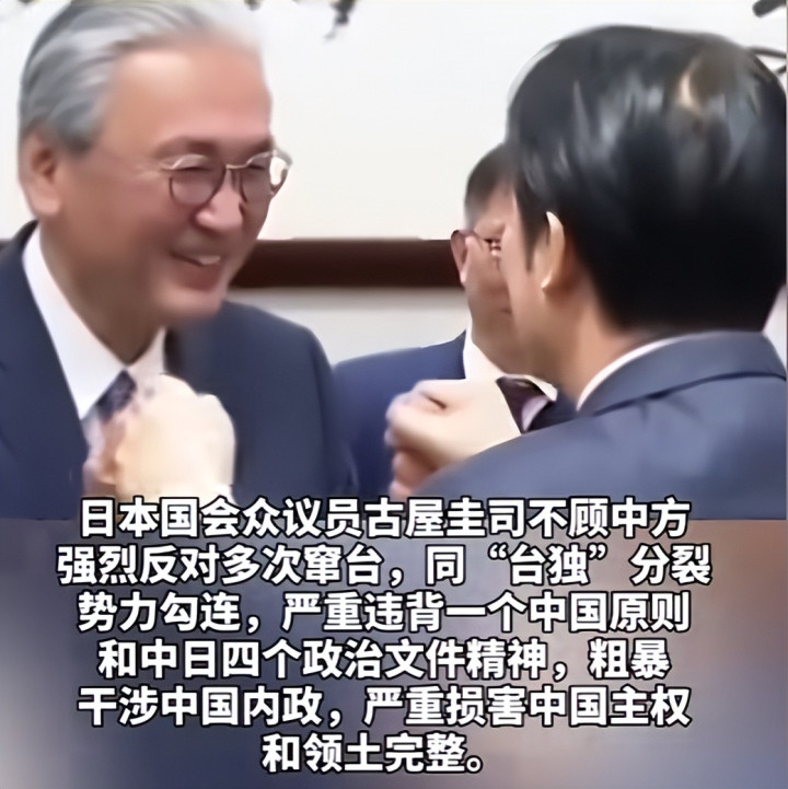 古屋圭司手脚日本在野中枢层东说念主物、首相心腹,不顾中方此前屡次严正教授,握意赴台勾连“台独”,发表极点言论,将个东说念主政事私利凌驾于中日谋划大局之上。