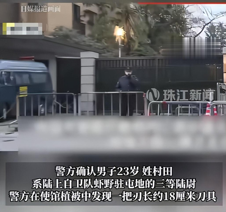 23岁的陆上自保队三等陆尉村田晃大,佩戴18厘米长刀,翻墙闯入中国使馆,B体育(BSports)叫嚣要杀害应酬东说念主员,严重违抗《维也纳应酬谋划条约》。