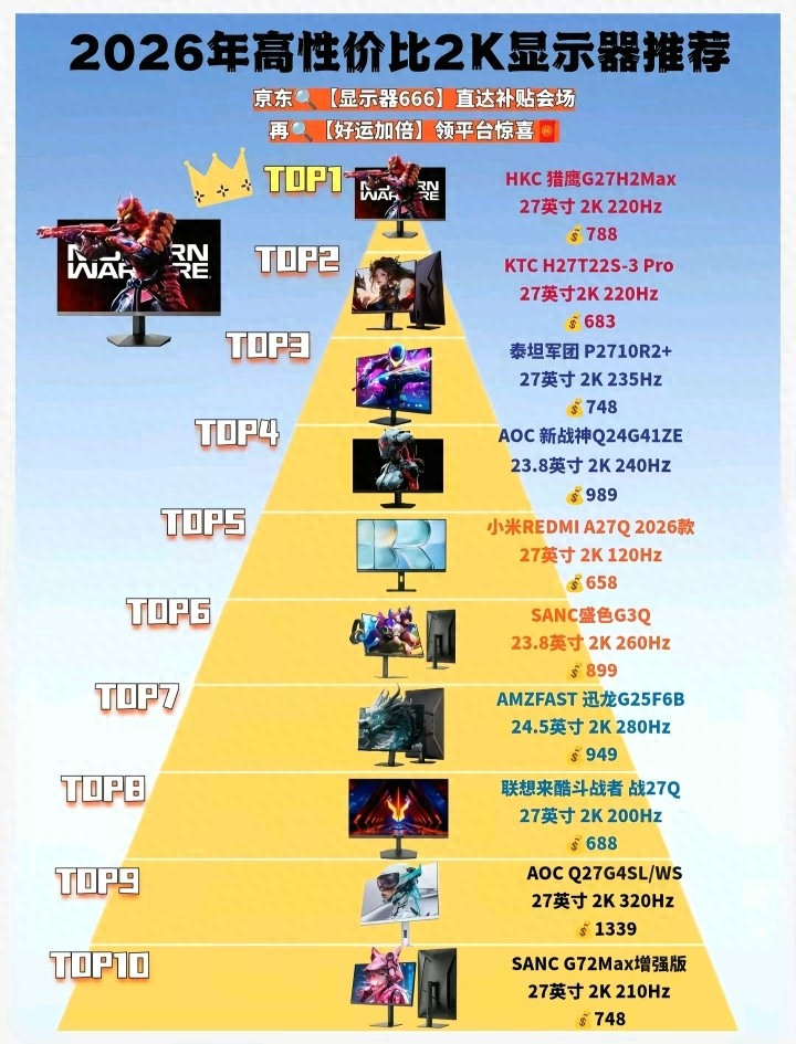 B体育官方网站首页 2026年高性价比2K显现器名次榜已公布: HKC猎鹰G27H2Max排名榜首