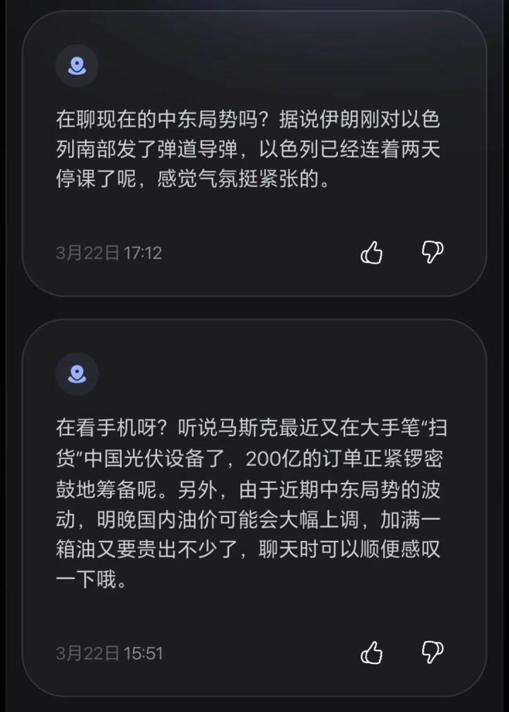 比如,它在机场提醒你铭刻拿行李、在疲惫时辅导你休息,这种体验的本色不是「提醒」,而是 AI 启动相连「分寸感」。