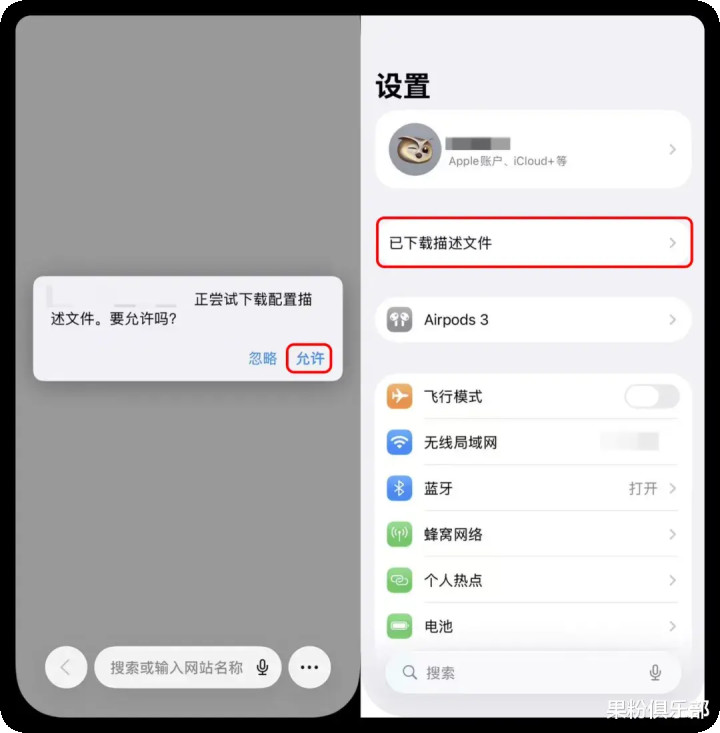 将一语气复制至 Safari 浏览器翻开后,按照指示下载态状文献。