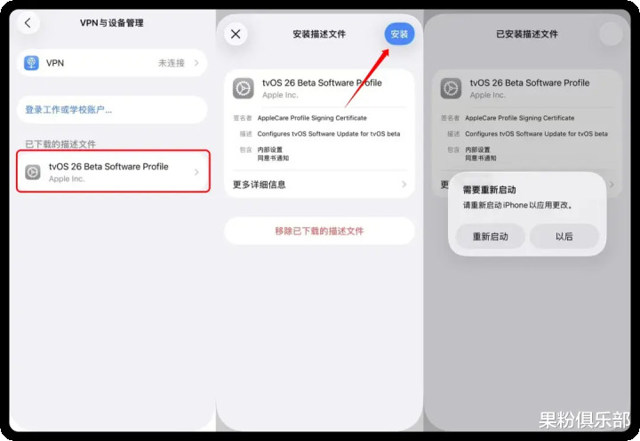 思规复平日更新的话,只需要干与「建设」—「通用」—「VPN 与树立处置」删除态状文献即可。