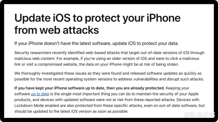 淌若你的 iPhone 仍停留在旧版系统,请立即升级至更新的系统,以取得愈加安全的使用环境。