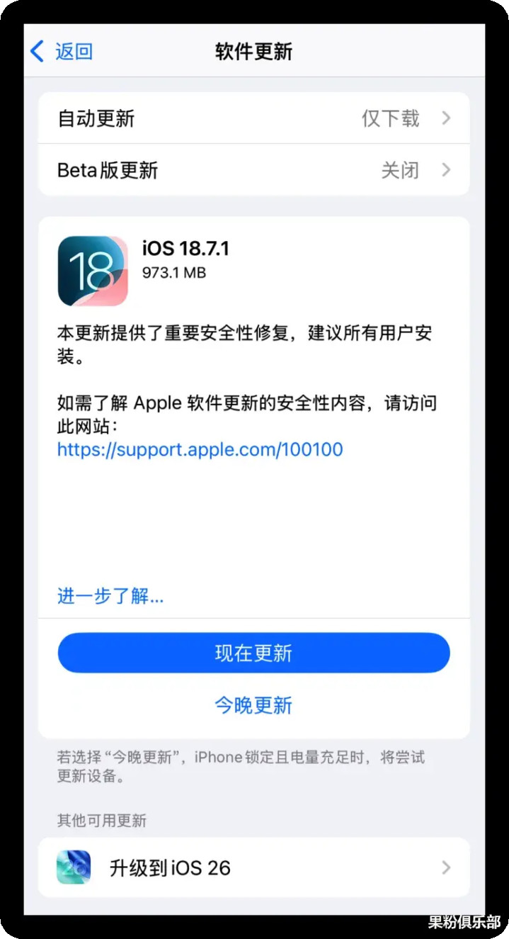 此前依然装置了 iOS 18 屏蔽更新态状文献的用户,需要先移除旧版态状文献,才略平日使用新版。