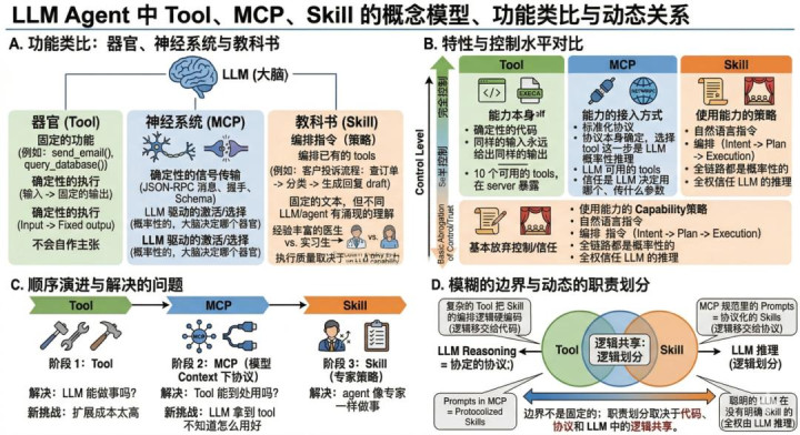 比如说,之前各人说 MCP 是“神经系统”,那 tool 即是“器官”,Skill 即是“教科书”。