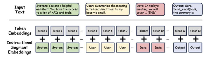 比领导层级更进一步,不错在涌现层面就把不同开始的内容区分开。比如 Instructional Segment Embedding 这种步履(https://arxiv.org/abs/2410.09102),在模子架构层面引入分段信息,具体作念法是给每个输入 token 附加一个 segment 标志,举例系统领导象征为 0,用户 prompt 象征为 1,数据输入象征为 2,通过一个学习的 embedding 层将其升沉为 segment embedding,和 token embedding 一王人送入自谨防力层。这么层级信息被编码在了模子的输入涌现中,每个 token 在插足自谨防力层时就佩戴了“我是系统领导/用户输入/外部数据”的标志。
