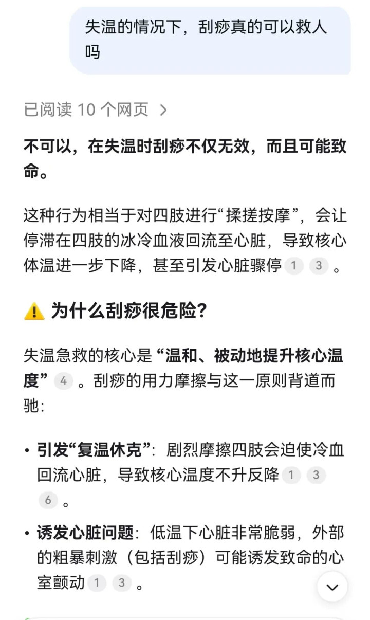 笔者汇注也进行了府上查询,阐明东说念主再失温的情况下,淌若进行刮痧,不仅无效还可能致命。