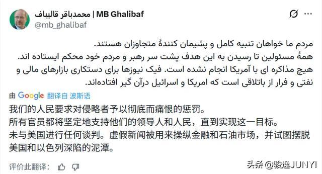 可伊朗何处呢?酬酢部一口否定:莫得对话,莫得谈判。塔斯尼姆通信社奏凯开骂:“欺人之谈”,是有东谈主想搞“政事和社会裂痕”。伊朗议会议长卡利巴夫更是在深夜躬行下场辟谣:假新闻,指标是把持石油市集。