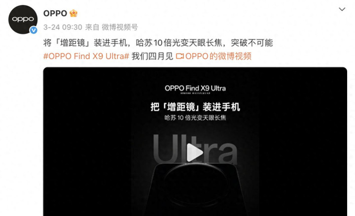 OPPO官方微博截图 / 发布Find X9 Ultra 10倍光变预热内容