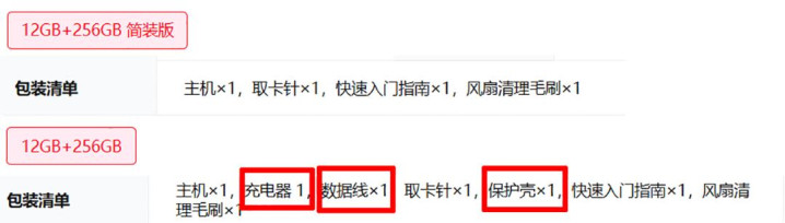 电商平台的商品页面先容显现,简装版去掉了这三个配件:充电器,数据线,以及保护壳。