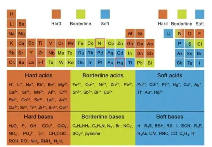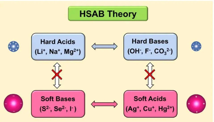 软硬酸碱表面是开荒在路易斯酸碱表面基础上的,即酸是电子对接管体,碱是电子对赐与体。Ralph G. Pearson将路易斯酸碱按 “硬度” 分为三类,硬酸/碱、软酸/碱、接壤酸/碱。